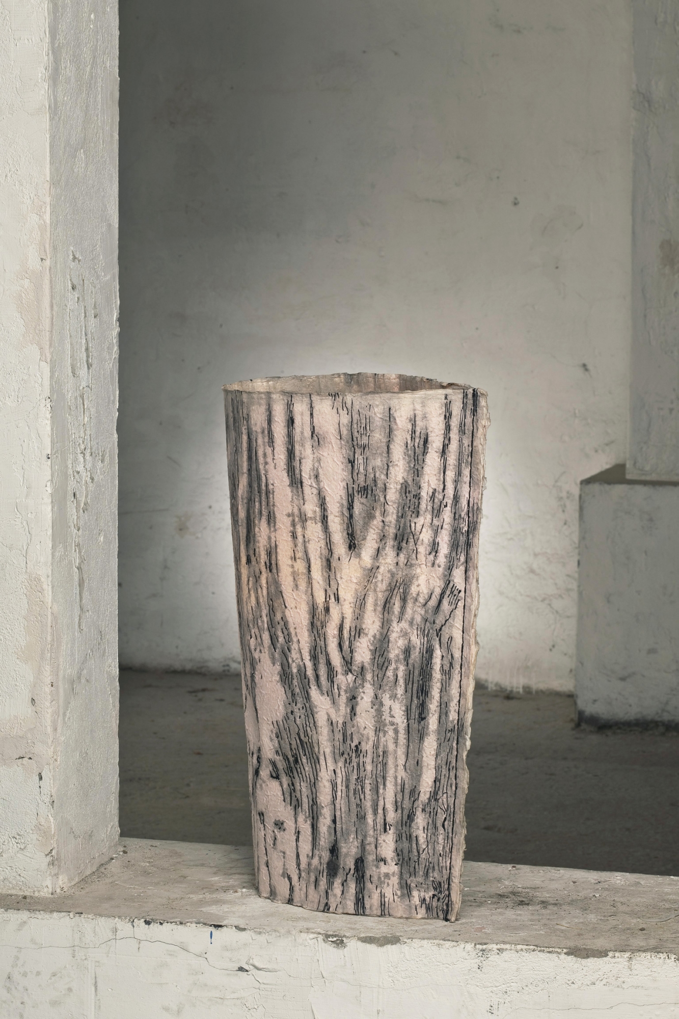 Material: Japanpapier, Pigmenttinte, Draht, Keramikfuß